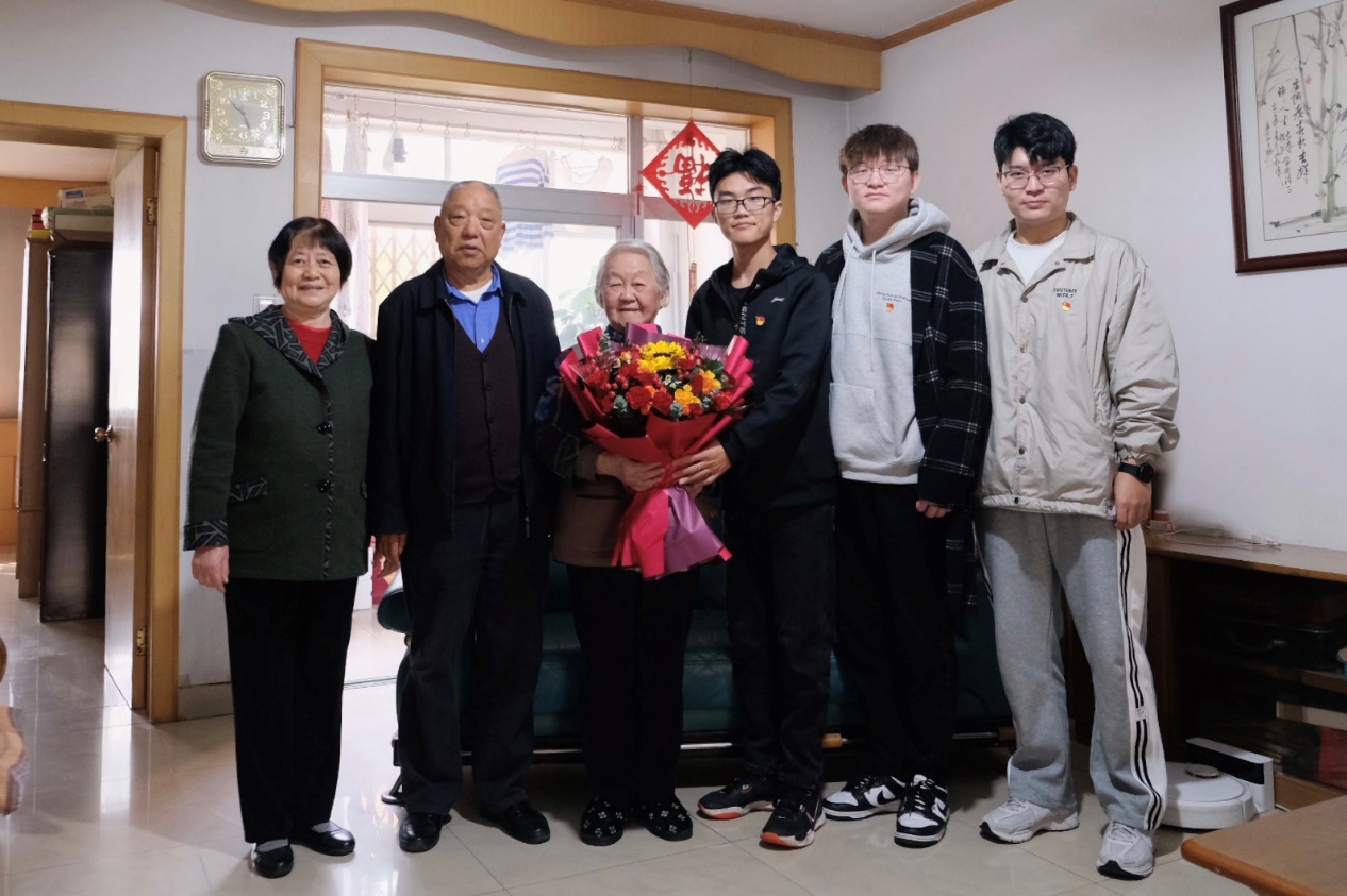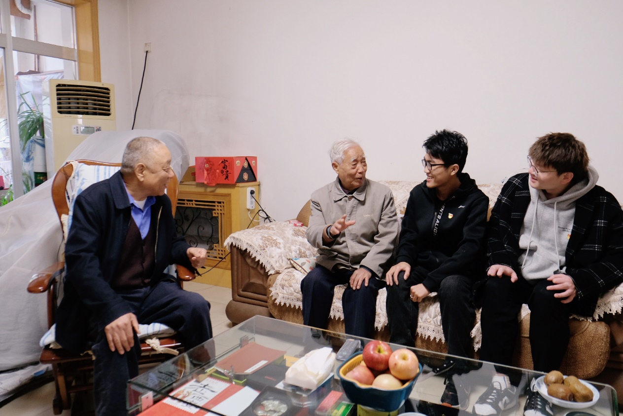 在这个属于长者的节日里,通过陪伴老人、派发礼物,积极营造养老、孝老、敬老的节日氛围,切实增强老年人的获得感、幸福感、安全感。在离退休党委第一党总支第一党支部书记党怀斌老师及组织委员曹玲老师的带领下,同学们先后来到退休教师党员崔鸿文、梁兆兰、曹光荣家中看望,与三位老教师促膝长谈,并致以节日的问候和祝福。老教师们对大家的到来表示感谢,在与同学们的热情交流中表达出对大家的期望,老教师们表示,青年人应当立足实践,努力学习。大家也了解到长者们的身体状况和生活情况,聆听了老党员的奋斗故事,嘱托长者要保持身心愉悦,注意身体健康。