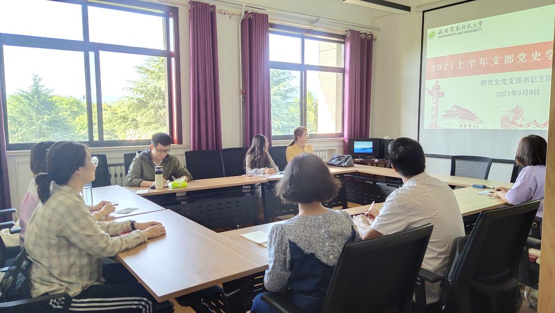 为认真贯彻“学史明理、学史增信、学史崇德、学史力行”要求,落实教育部党史学习教育指导意见,引导党员增强“四个意识”、坚定“四个自信”、做到“两个维护”,研究生党支部于9月9日召开党史学习教育专题组织生活会。