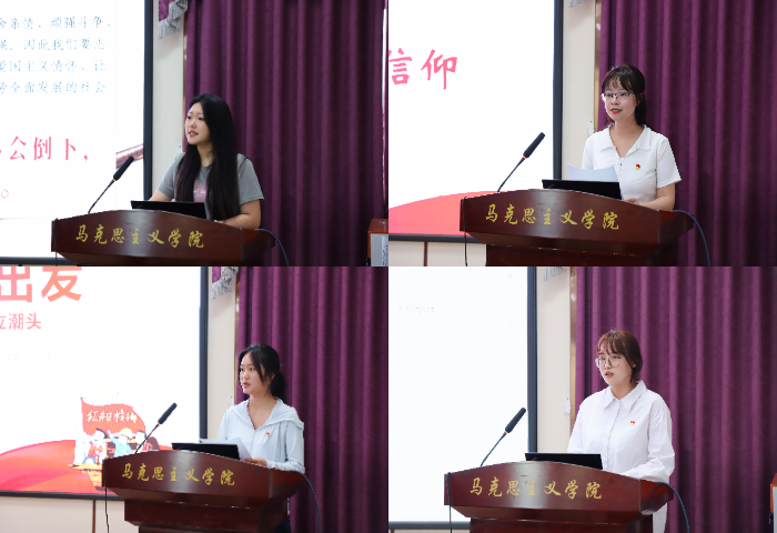 宣讲团成员张思雯、麻小芬、王佳慧、吴勇春4位同学依次走上讲台,逐一分享她们准备的精彩红色故事。