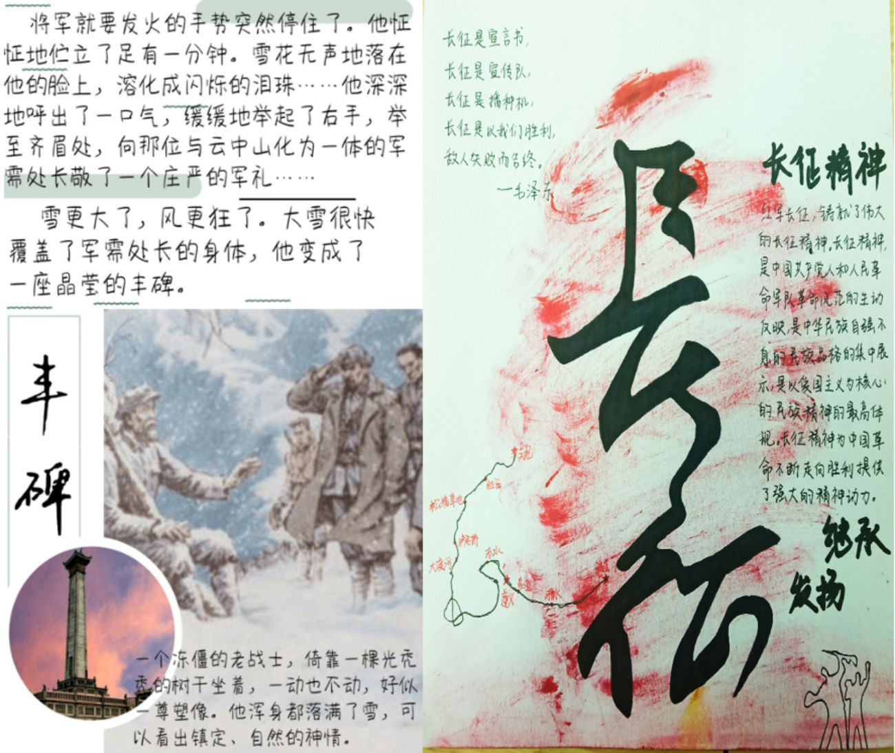 四、忆苦思甜,坚定理想信念。在长征专题学习过程中,结合大学生成长成才,面对困难如何持之以恒,百折不挠,做到心中有信仰,脚下才能有力量。长征中许多事例给同学们留下了深刻印象,如倔强的小红军、彭德怀的大黑骡子、丰碑、半碗青稞面等。八十多年前的那次为了中华民族命运的长途跋涉,让零零后的学生热泪盈眶,感动不已,结合长征精神,让他们来写《我的长征》。红军不怕远征难,万水千山只等闲,同学们结合成长经历,把长征精神入脑入心,用行动来践行新时代的长征路。