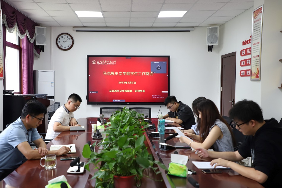 2022年9月2日下午,我院于学院208会议室召开2022年秋季学期第一次干部例会,学院党委副书记、副院长王家武,团工委书记赵昂,团工委及研究生会全体学生干部参加此次例会,例会以线上+线下的方式进行。
