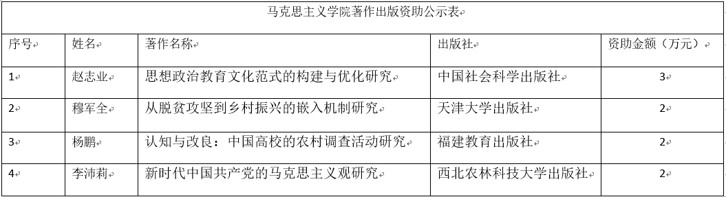 关于著作出版资助的公示
