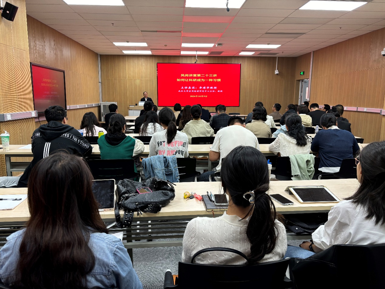 10月9日,中国伦理学会原常务副会长、武汉大学应用伦理研究中心主任李建华教授应邀做客凤岗讲堂,为学院师生做了题为《如何让科研成为一种习惯》的专题报告,报告会由学院副院长高小升教授主持,全院师生参加此次会议。
