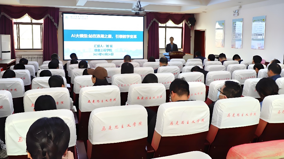 3月26日,开云电子官方网站-登录入口邀请我校信息工程学院刘斌教授作题为《AI大模型:站在浪潮之巅,引领教学改革》的专题讲座。学院党委副书记兼副院长王家武主持,学院领导和全体思政课教师聆听讲座。