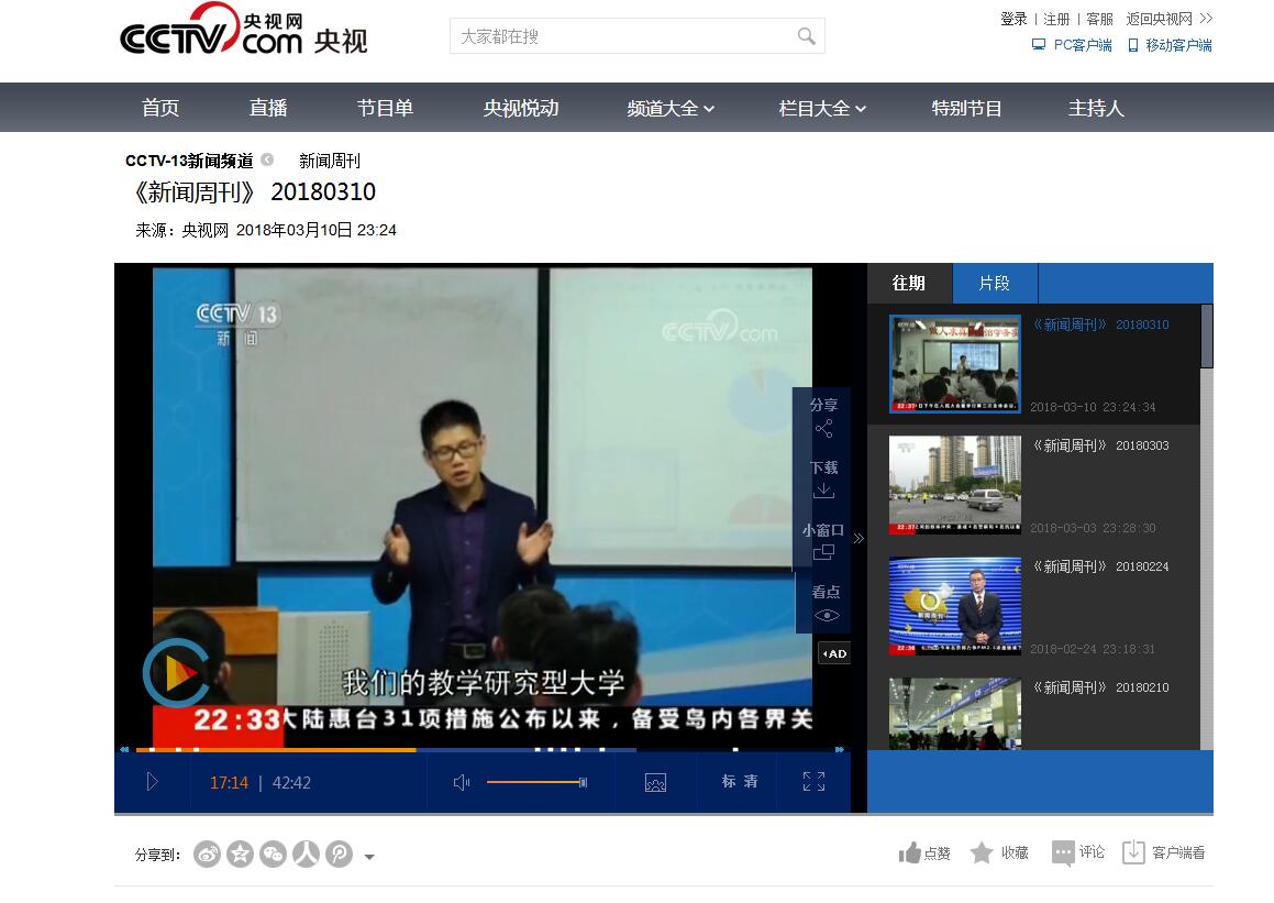 3月20日,中央电视台《新闻周刊》集中报道了各地高校丰富课程形式、创新内容载体,努力引导学生成为大学思想政治理论课主角的新闻。其中我校开云电子官方网站-登录入口设置思想政治理论课的实践课程,以“主题返乡调研”的方式,让学生自主拟定调研题目,撰写实践报告,创新了思政课实践教学形式,并与我校农科特色相结合,让大学生对思政课有了不一样的感受,受到央视关注,并在当晚《新闻周刊》播出。