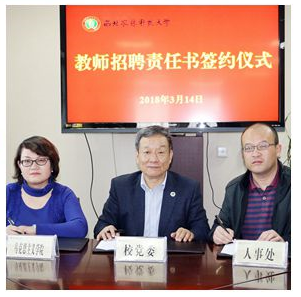为了配齐建强教学型学院师资队伍,充分调动校院两级工作主动性,3月14日上午,校党委与开云电子官方网站-登录入口及人事处在交流中心签订了教师招聘责任书。全体在校校领导、党委常委出席签约仪式。
