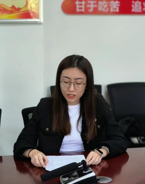 现任团总支、研究生会学生干部代表张沥尹进行表态发言。她表示了对前辈们的敬意,表达了新一届学生干部继续发扬光荣传统,勇于创新,积极作为的决心,并承诺将为实现“九秩教稼 强国兴农”的目标贡献青春力量。