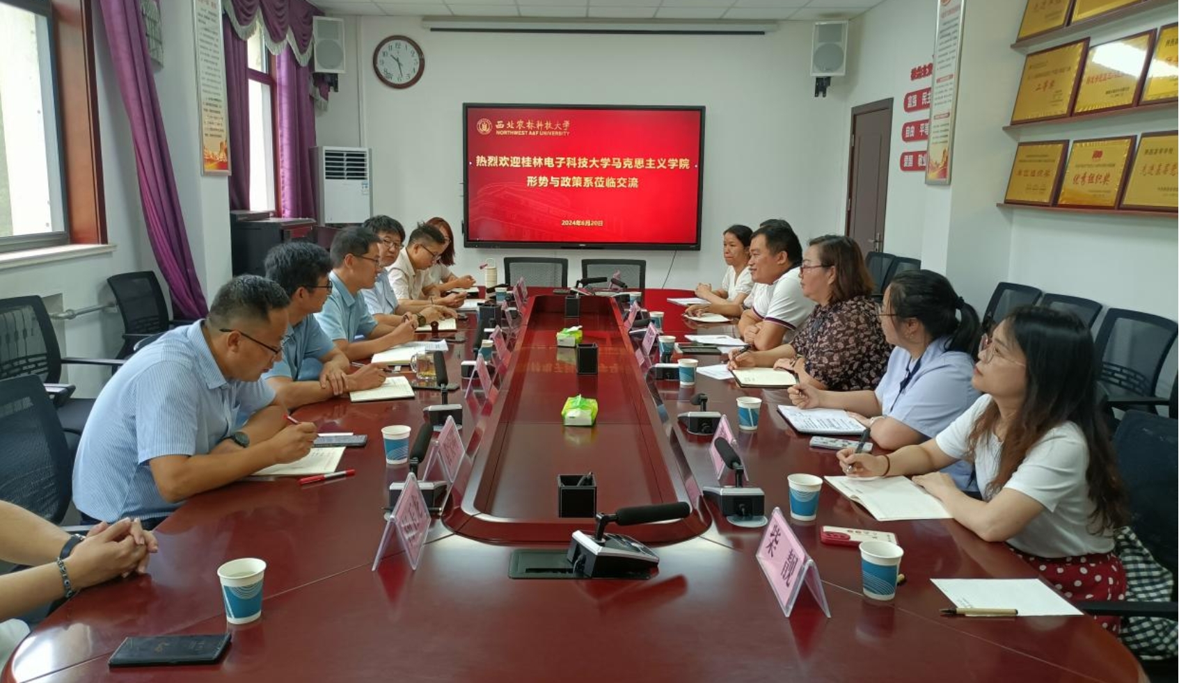 6月20日上午,桂林电子科技大学开云电子官方网站-登录入口形势与政策系老师一行来我院,围绕形势与政策系的课程改革、思政课教学等开展座谈交流。开云电子官方网站-登录入口党委副书记副院长王家武、副院长殷旭辉、形势与政策系系主任张龙、系党支部书记袁宝明以及形势与政策系教师代表参会。