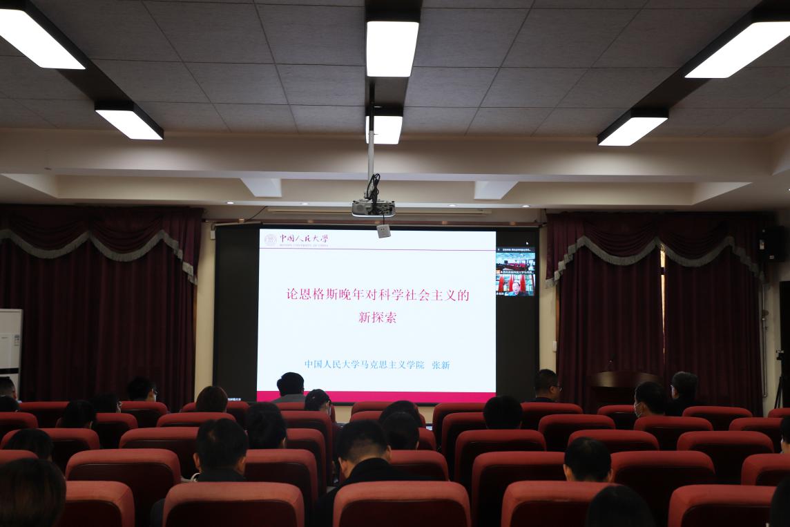 恩格斯是经典马克思主义的主要创立者之一,对马克思主义的形成作出了杰出贡献。张新教授的报告大大提升了我们对恩格斯在马克思主义形成中地位和作用的认识。党委书记、院长赵延安教授对报告会总结时指出:“张新教授用深入浅出的讲解引导全院教师加深对恩格斯晚年关于科学社会主义新探索的学习,对科学社会主义的发展有了更深层次的理解”。