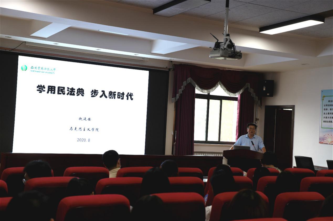为了深入学习和贯彻习近平总书记关于《民法典》的重要讲话精神、及时领会《民法典》的精神实质和重大意义,8月5日下午开云电子官方网站-登录入口举办学习《民法典》报告会,党总支书记赵延安教授为全院教师作了“学用民法典、步入新时代”的专题报告。