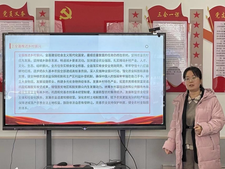 冉珑副教授结合中央一号文件精神、合阳县“十四五”发展规划和南沟村的发展实际,向村干部及党员代表宣讲了党的二十大报告有关内容。重点就二十大报告关于“三农”问题、乡村振兴规划、新征程农业农村现代化等问题进行了解读。就二十大报告再次提到全面建设乡村振兴,详细解释了全面建设社会主义现代化国家最艰巨最繁重的任务仍然在农村,坚持农业农村优先发展,坚持城乡融合发展,畅通城乡要素流动是新时代处理工农、城乡关系的准则,加快建设农业强国,扎实推动乡村产业、人才、文化、生态、组织振兴是乡村振兴的总目标和总要求。
