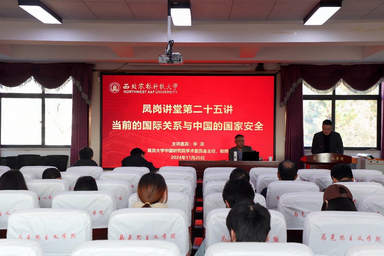 11月20日,复旦大学中国研究院教授、学术委员会主任、博士生导师、教育部马克思主义理论研究与建设工程教材(国际政治经济学)首席专家李滨应邀做客凤岗讲堂,为学院师生做了题为《当前的国际关系与中国的国家安全》的专题报告,报告会由学院副院长杨鹏教授主持,全院师生参加此次会议。