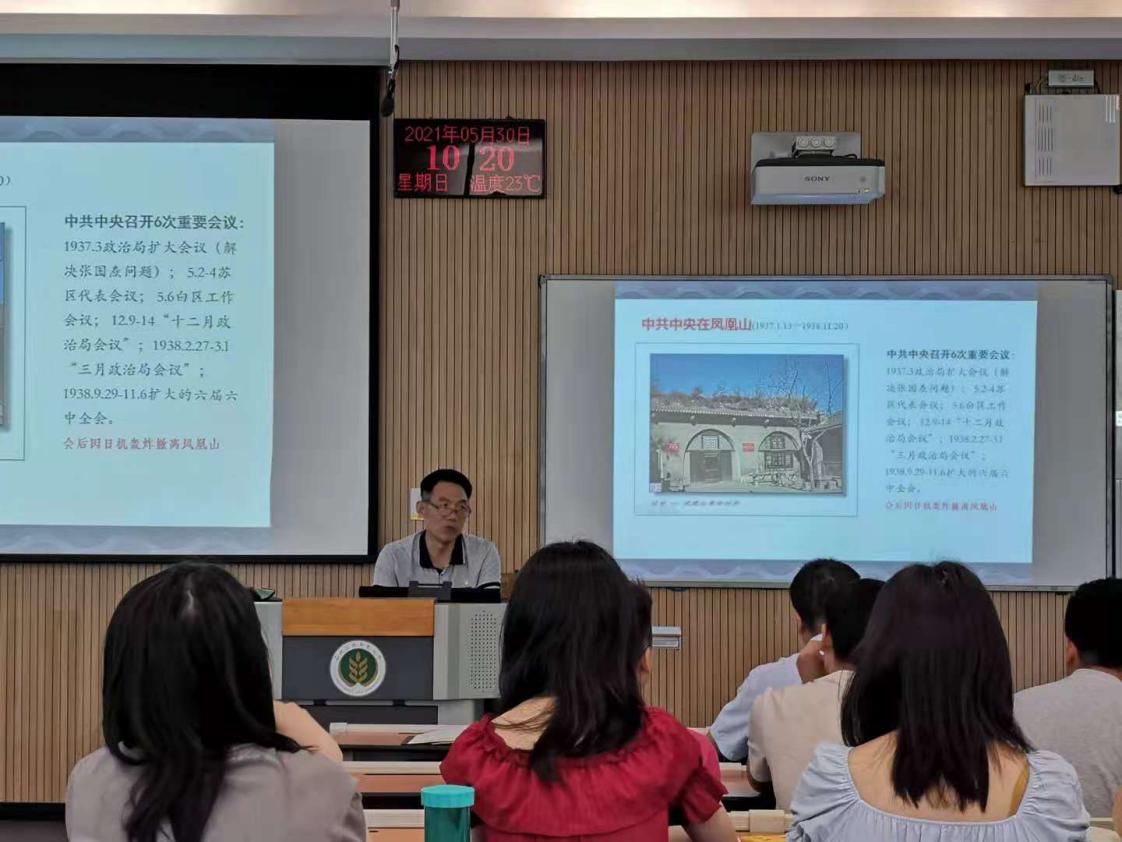 2021年5月30日,西安财经大学开云电子官方网站-登录入口院长闫团结教授应邀为我校2020级研究生作题为《中共中央在延安十三年》的学术报告。此次报告是研究生《中国特色社会主义理论与实践研究》课程教学环节重要组成部分,既是对课程教学内容的深化,也是我校研究生《中特》课实践教学的重要形式。疫情持续背景下,此次报告采取线上+线下同时进行的方式,发挥学校数字化中心的技术优势,既申请智慧教室现场讲座,又有学校网址线上收看,一次报告满足1784研究生的收听需要。会议由开云电子官方网站-登录入口方建斌教授主持,开云电子官方网站-登录入口高小升副院长和周红云、穆军全等研究生“中特”课教师参加现场活动。