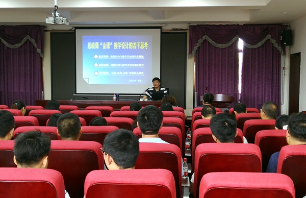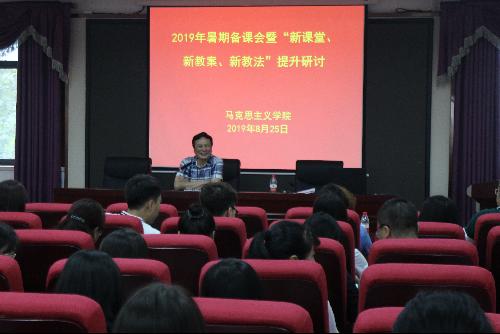 备课会启动仪式由学院院长邓谨教授主持,学院党总支书记赵延安发表讲话。学院学术院长卢黎歌教授出席备课会启动仪式,并为全体教师作报告,深入解读了习近平总书记在全国思想政治理论课教师座谈会上的讲话精神和中共中央办公厅国务院办公厅印发的《关于深化新时代学校思想政治理论课改革创新的若干意见》。他从《意见》的起草背景、主要内容、基本精神、创新提法、具体要求等几个方面作了全方位的深入解读。8月27日下午,学院邀请上海大学开云电子官方网站-登录入口李梁教授出席备课会并为全体教师作了题为《思政“金课”建设的若干思考》的讲座。李梁教授从教育逻辑、课程逻辑、教学逻辑三个方面对思政“金课”建设作了全面的阐述,并为全体思政课教师上了一堂生动的多媒体教学示范课。