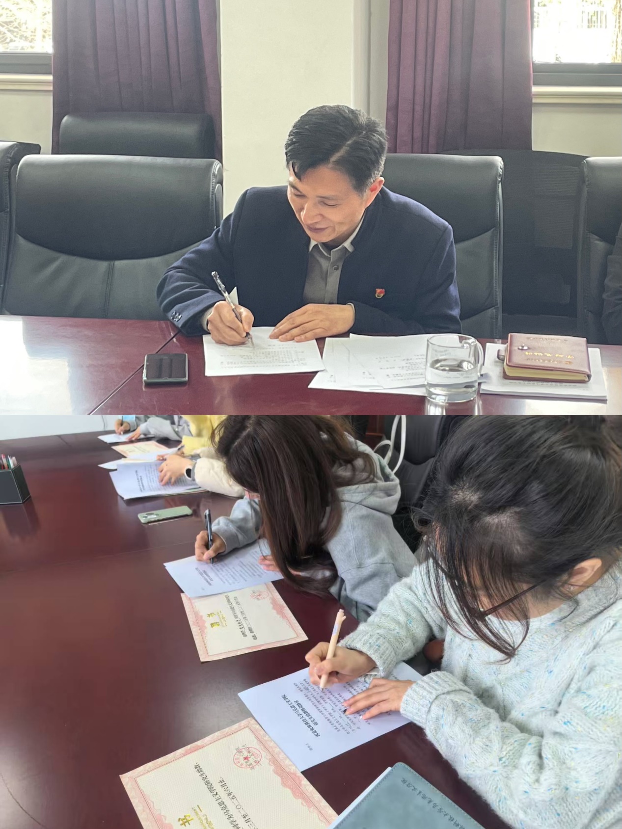聘任仪式上,学院与新聘助教签订了《助教聘用协议书》。《协议书》明确了助教的主要工作职责及助教补助发放办法等具体内容。新聘助教对学院给予的锻炼机会表示感谢,表示将严格遵守管理办法,主动向指导教师学习经验,扎实完成岗位任务,为提升思政课教学质量贡献青春力量。