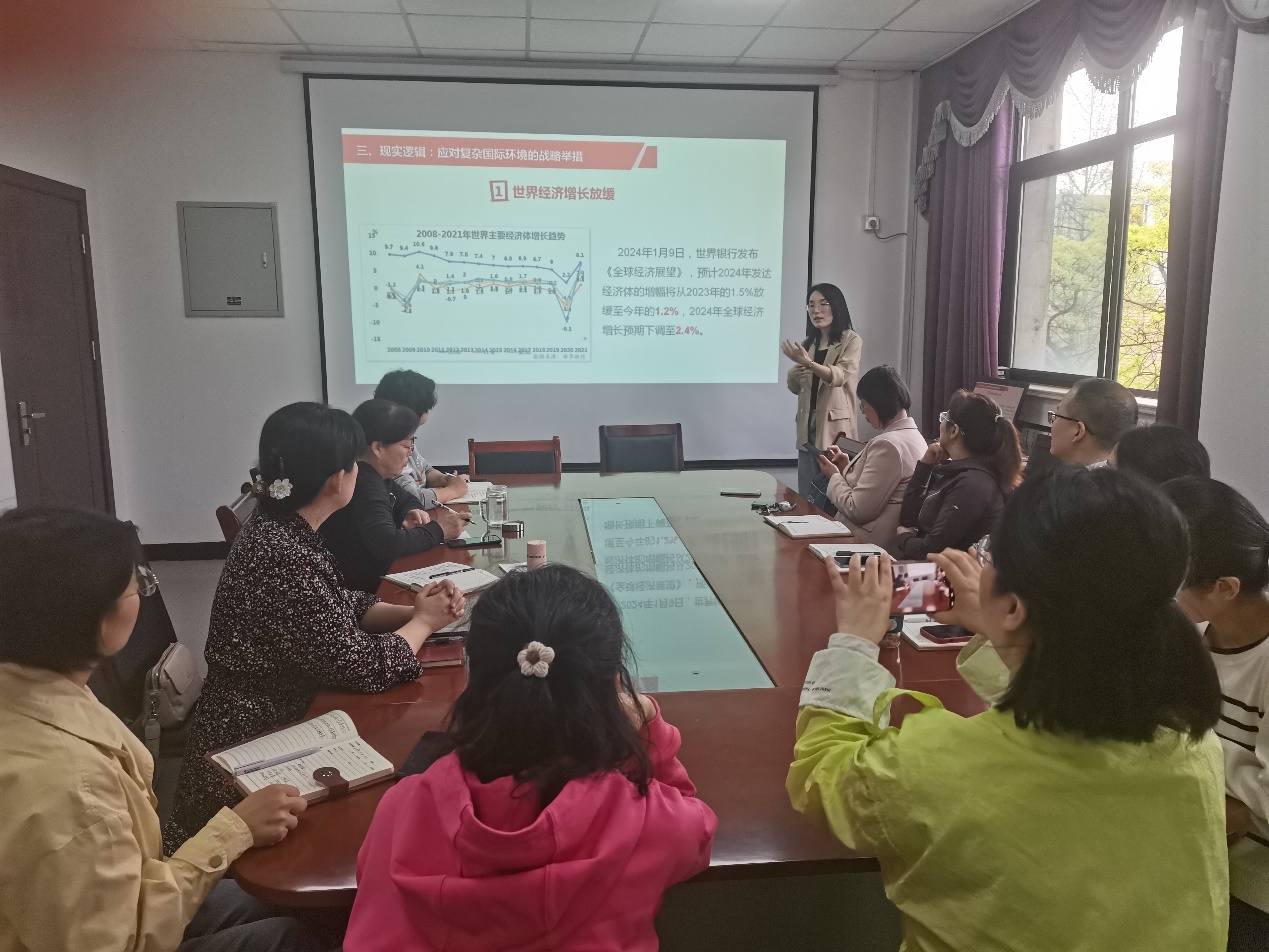 备课会上,石伟琦老师以《构建新发展格局的逻辑依据》为题,为与会教师呈现了一堂生动的教学展示。她紧扣时事热点,从理论逻辑、历史逻辑、现实逻辑三个维度对新发展格局进行了深入剖析。整个教学过程以问题为导向,层层递进,逻辑严密,充分展现了石伟琦老师深厚的理论功底和精湛的教学技艺。