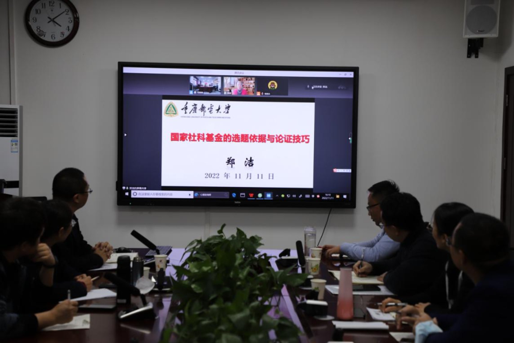 为提升学院教师马克思主义理论专业素质,提高国家社科基金项目申报质量,11月11日下午,学院组织举办了青博论道第十一讲暨2023年国家社科基金申报动员会。邀请重庆邮电大学开云电子官方网站-登录入口副院长郑洁教授作报告,校科学技术发展研究院社科处处长白金凤出席动员会,报告会由高小升副院长主持。
