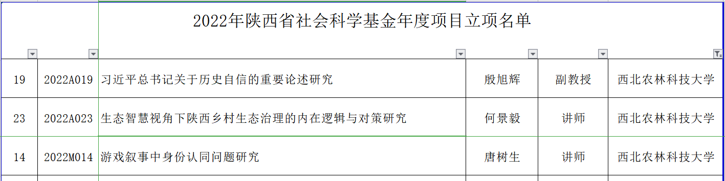 近日,陕西省哲学社会科学工作办公室公布了2022年陕西省社会科学基金年度项目立项名单,学院教师殷旭辉副教授申报的“习近平总书记关于历史自信的重要论述研究”、何景毅博士申报的“生态智慧视角下陕西乡村生态治理的内在逻辑与对策研究”、唐树生博士申报的“游戏叙事中身份认同问题研究”共3个项目获批立项。