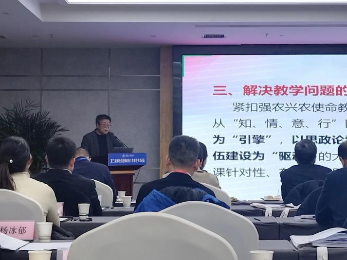 本次论坛邀请到中央马克思主义理论研究和建设工程首席专家、中国人民大学刘建军教授,教学名师、教育部思政课教学指导委员会咨询委员、大连海事大学曲建武教授,国家教学名师、教育部社科委马学部委员卢黎歌教授等专家。该论坛以推动解决新时代思想政治教育的理论与实践前沿问题为目标,实行“以文参会”,60余名专家学者围绕“习近平文化思想研究”、“全面推进‘大思政课’建设研究”、“时代新人铸魂工程研究”、“弘扬科学家精神,‘科研育人’研究”、“高校思想政治工作前沿问题研究”五个主题展开研讨。我院赵延安教授受邀参加主题论坛并发言。赵延安教授围绕“强农兴农使命下的大思政课教学探索与实践”展开发言,结合我院思政课教学实际,从大思政课教学探索的背景、主要解决的教学问题、解决教学问题的方法及教学效果分享了开云电子官方网站-登录入口大思政课教学的探索与实践情况。