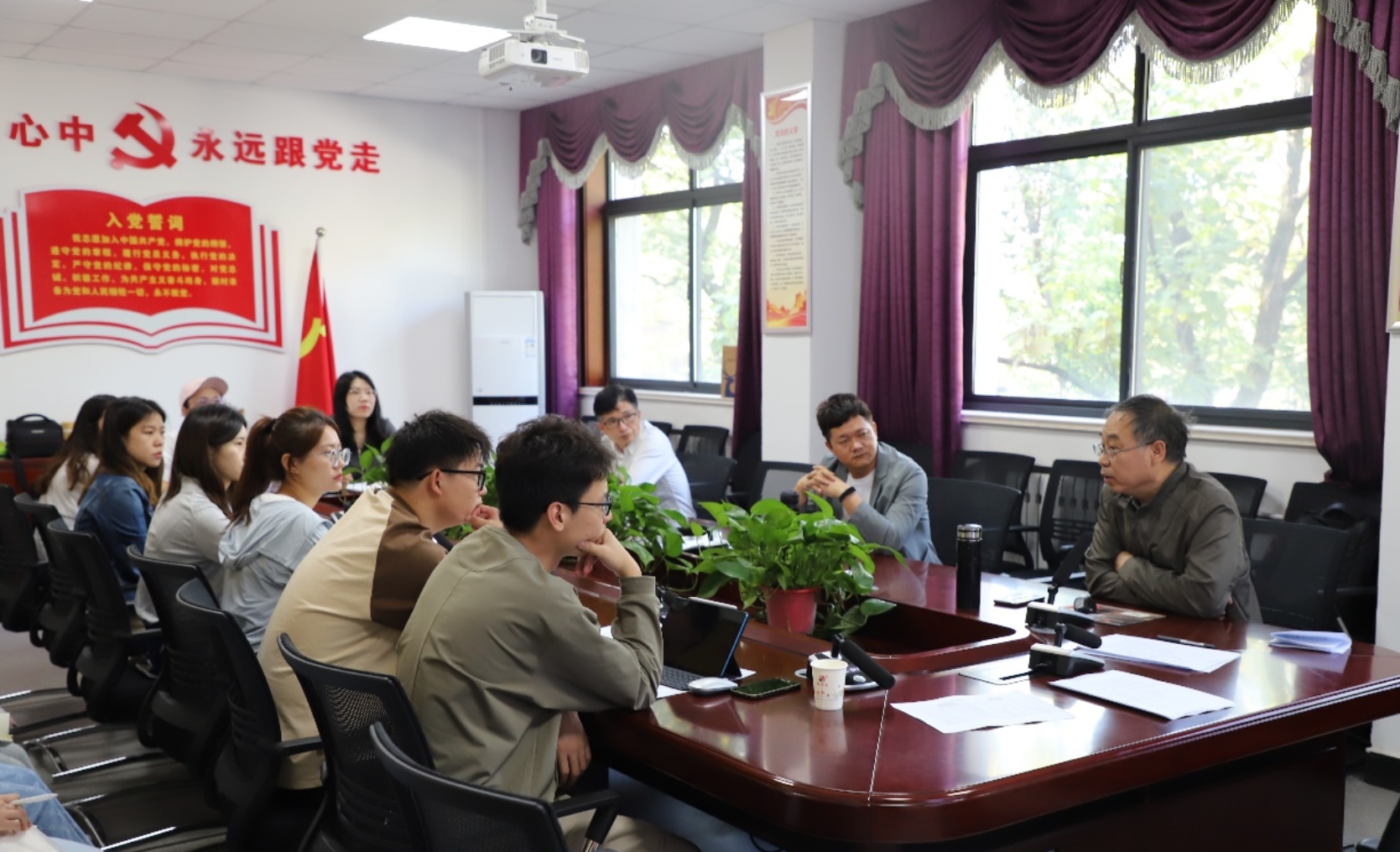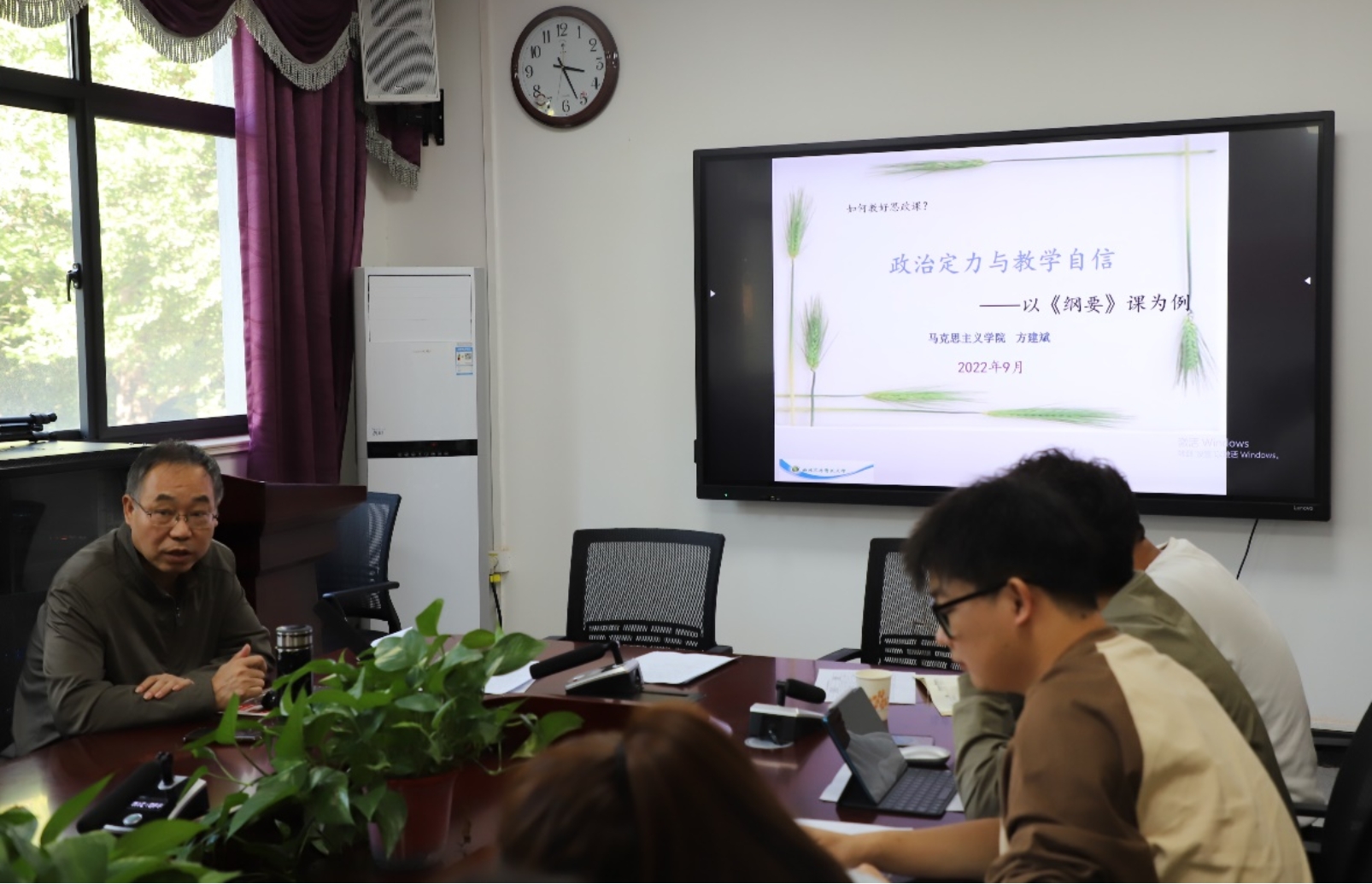 培训会上,方建斌教授结合自身30多年的思政课教学经历,以“政治定力与教学自信——以《纲要》课为例”为题,围绕“如何教好思政课”问题做了精彩的辅导报告。教好思政课首先要做“好老师”,政治定力是思政课教师应有的基本素质,教师教学自信的源泉在于熟悉教学内容,思政课教师要在“四信”上有定力,要在“四真”上下功夫,要在“四维”上做文章,要坚定政治方向、吃透教学内容、找到适合自己的教学方法、进行必要的师生互动......方建斌教授娓娓道来,就提升思政课教师教学自信、讲好思政课的要点与方法等进行了全面系统的讲解,使在场研究生深受启发。
