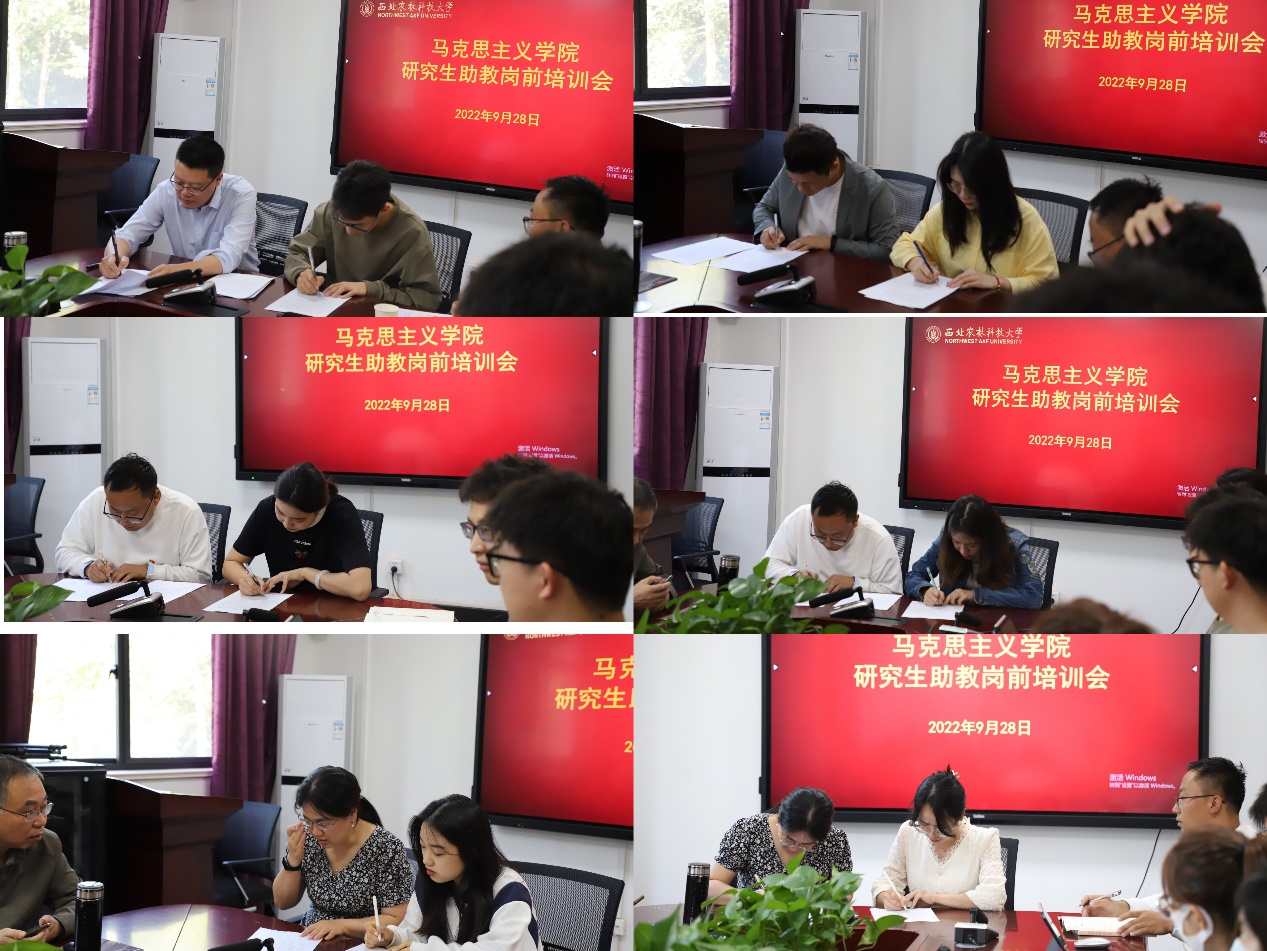培训前,五个系和研究生课程部的负责人、助教指导老师代表与受聘研究生逐一签订聘用协议。通过协议,明确了研究生助教的岗位任务和系(部)及助教指导教师的职责。此次培训会的召开,标志着开云电子官方网站-登录入口第一批研究生助教工作正式启动。