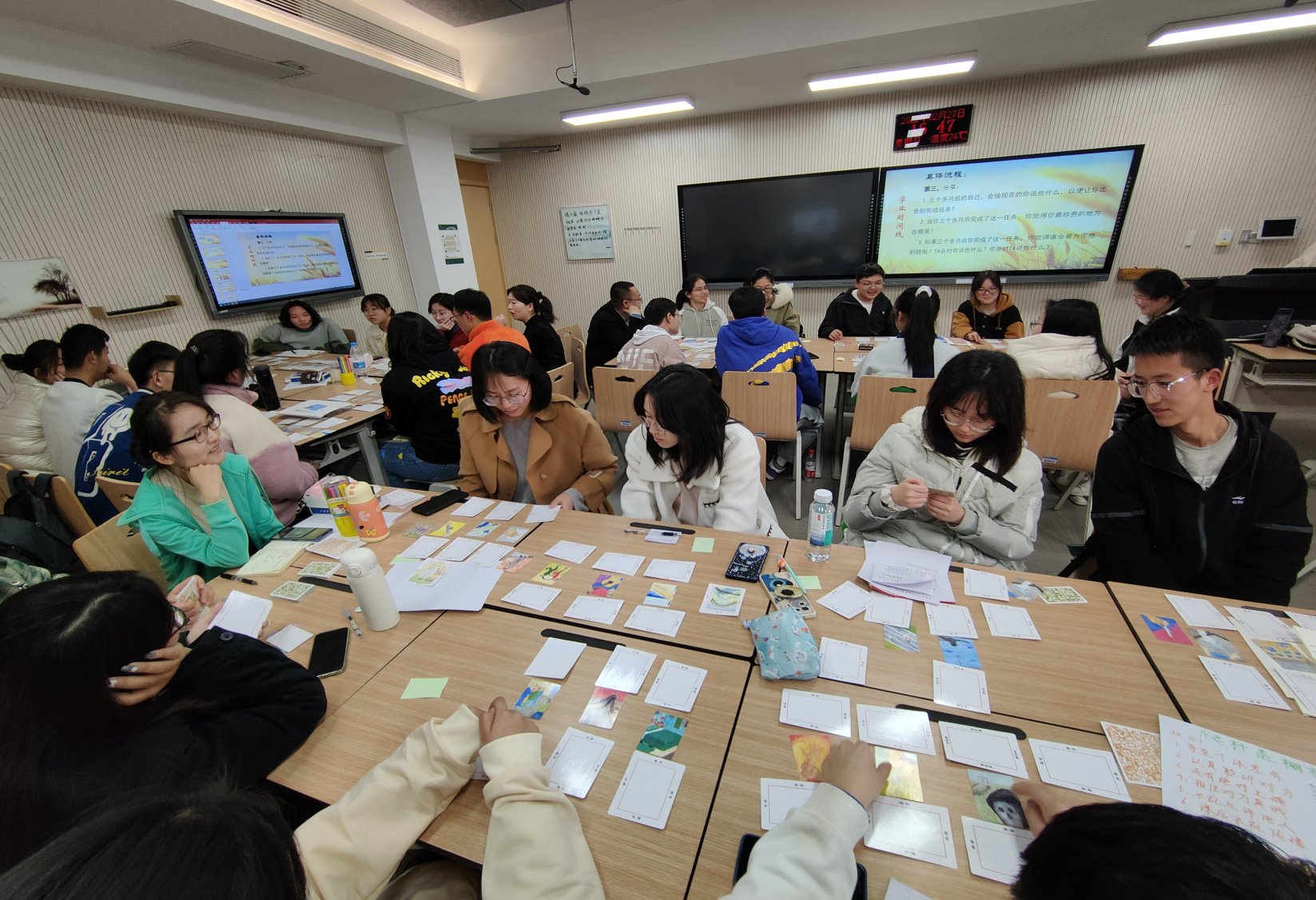 教学实践继续秉持“自下而上”的教育理念,坚持教师积极启发引导与学生自觉求知践履的统一,通过协作、对话、研讨和交流进一步深化教学改革实践,探究先进教育理念下的教学新形态,旨在与课堂教学形成相互补充、有利互动,加强思想引领,筑梦学生成长。活动立足新时代、贯穿新思想、着眼新要求、运用新话语,以卡牌为媒介,引导青年大学生在对中华民族伟大复兴进程的深刻认识中认清自己肩上的责任,结合个人实际制定出个性化的成长规划并积极实践。本次教学实践通过带领老师、特邀嘉宾、助教团成员、参与同学的相互配合与深度交流,充分发挥学生的主体性作用,让学生真正做到在思政课学习中“动情、动心、动脑、动口、动手”,自觉树立正确、高尚的人生观,将自己的人生规划与中华民族的伟大复兴紧密相连,把个人的理想抱负同人民的需要紧密结合,在祖国和人民的怀抱中、在社会实践的广阔舞台上绽放青春的精彩、成就绚丽的人生。