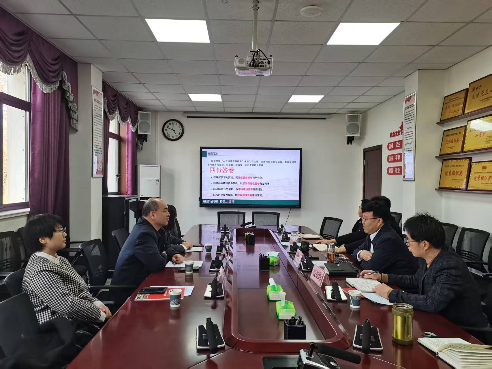 学院党委书记闫德忠对新疆农业大学马院的到来表示热烈欢迎,并以“党建引领,全力做好四份答卷”为题介绍了学院基本情况、特色党建、师资力量提升、教育教学改革、学科建设规划等情况。